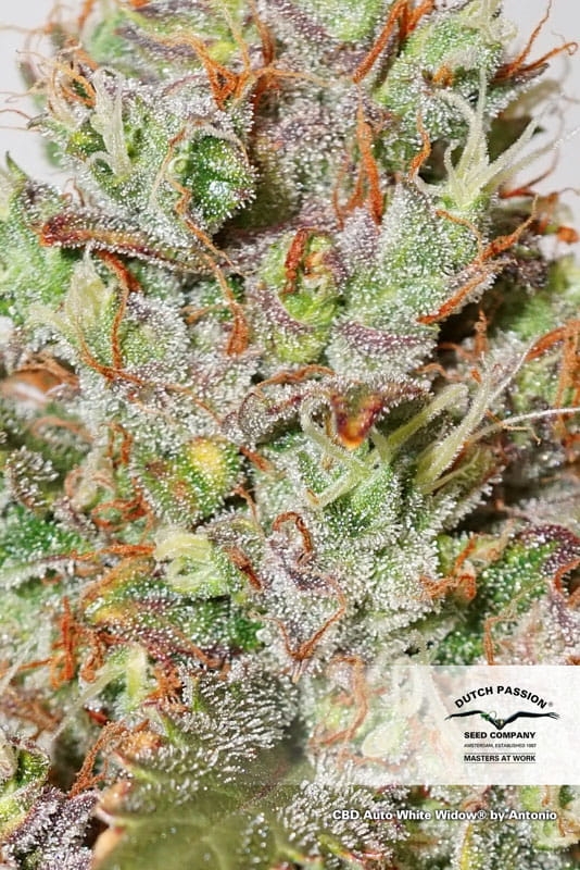 CBD Auto White Widow wykorzystuje oryginalną odmianę Dutch Passion Auto White Widow skrzyżowaną z CBD Sweet i Sour Widow przez zespół The CBD Crew, w celu stworzenia gatunku 1:1 THC:CBD.