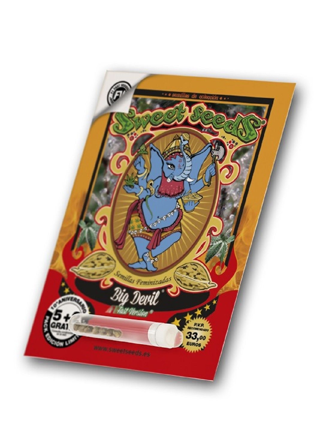 Big Devil F1 Fast Version od legendarnego hiszpańskiego breedera Sweet Seeds to odmiana powstała na bazie Big Devil Auto. Oczywiście podczas krzyżowań roślin zachowano oryginalne właściwości odmiany, ale usunięto z niej autoflowering. Big Devil Fast Version nie jest automatem. Oryginalne nasiona feminizowane dostępne w paczkach po 3 i 5 sztuk!